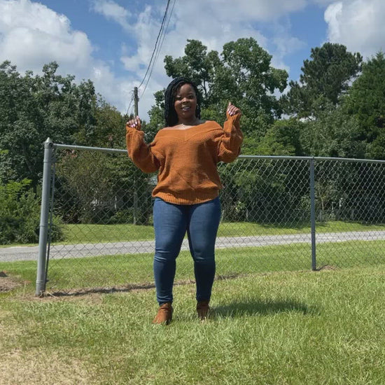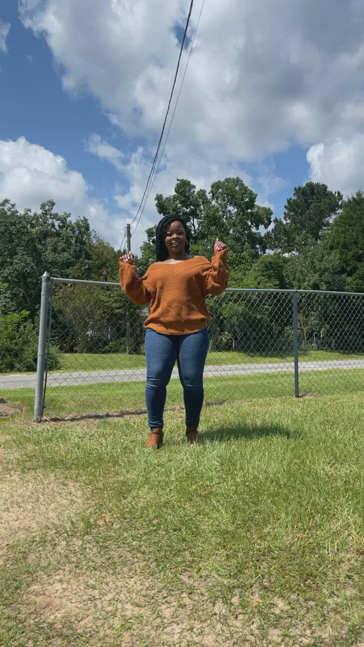 Beautés!! Our balloon sleeve, wide double V-neck waffle sweater is 🔥🔥!!